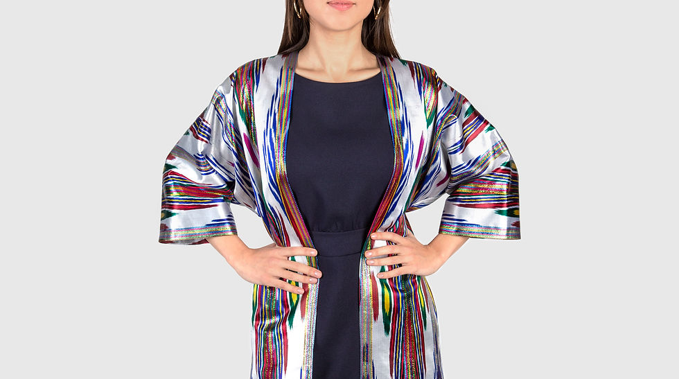 Our collection emphasizes the use of Adras, a fabric made from mulberry silk and cotton. This durable material is woven and dyed by hand, using traditional Uzbek methods. Due to this artisanal production, the fabrics may present small irregularities linked to weaving, making each piece very unique.